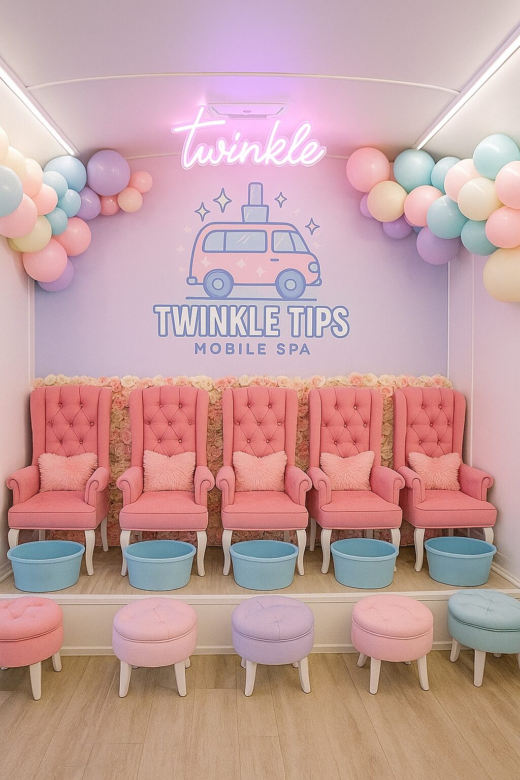 Mobile Beauty Bar brings joy to little girls’ birthdays with a delightful trailer offering nails, face masks, tea, and tasty snacks in a fun and elegant setting.
